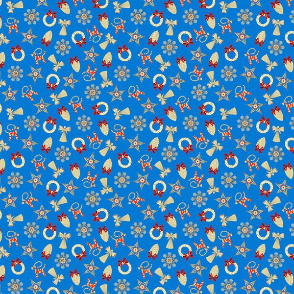 AC11C Straw Decorations Small on Blue, Norwegian Christmas by Arne & Carlos for Lewis & Irene. This beautiful Christmas collection is inspired by a typical Norwegian celebration, which includes winter landscapes, fun in the snow, reindeer, traditional Christmas elves that live in barns and will bring gifts if they get a bowl of porridge on Christmas Eve. Houses are traditionally decorated with ornaments such as stars, hearts, pinecones and angels made out of straw and Poinsettias are also part of Christmas decorations.