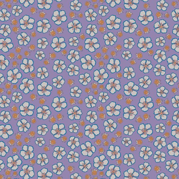 AC5.2 Multeblomst Lilac, Norwegian Forest Dream by Arne & Carlos features white Mullet flowers on a lilac background.
