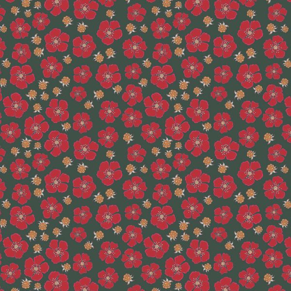 AC5.3 Multeblomst Green, Norwegian Forest Dream by Arne & Carlos features red Mullet flowers on a green background.