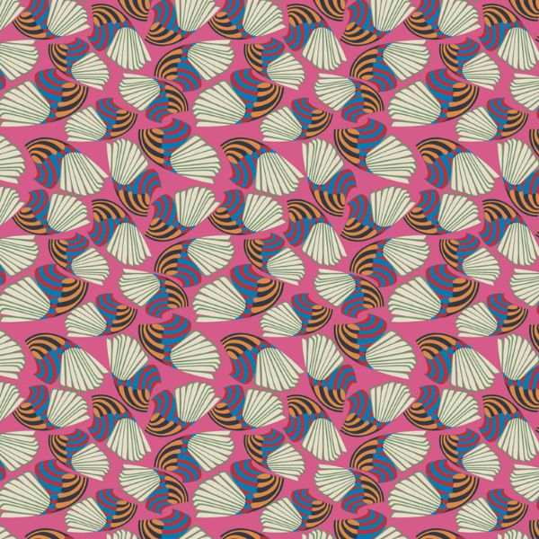 AC6.2 Vinger Pink, Norwegian Forest Dream by Arne & Carlos is a geometric design of striped bird wings on a pink background.