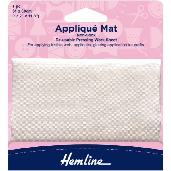 Appliqué Mat: 30cm x 31cm is a quality re-usable Teflon pressing sheet for bonding fusible web to most fabrics. Ideal for applique and craft. Place mat between iron and fusible web to avoid sticking.