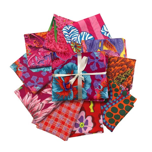 August 2023 Red Fat Quarter Pack (10pcs). Kaffe Fassett Collective for FreeSpirit presents this new collection. Featuring re-imagined designs by Kaffe Fassett & new designs from Brandon Mably. This collection features an array of bright bold flowers, including rhododendrons, hyacinths, and floating hibiscus flowers.