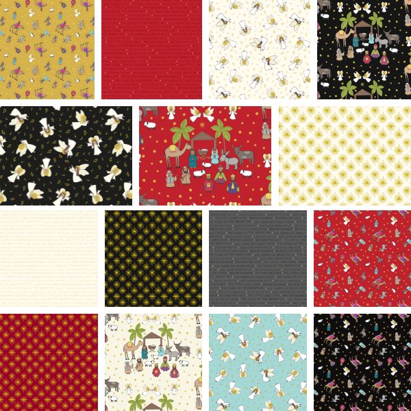 Away in a Manger Fat Quarter Pack by Lewis & Irene contains all 15 designs from the festive Away in a Manger collection by Lewis & Irene.