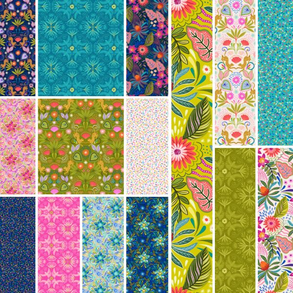 Bahia,a selection of Fat Quarters Pack (15pcs) – Feel the beat of the ‘Carnaval Baiano’ in this Brazilian inspired tropical explosion of fabrics!