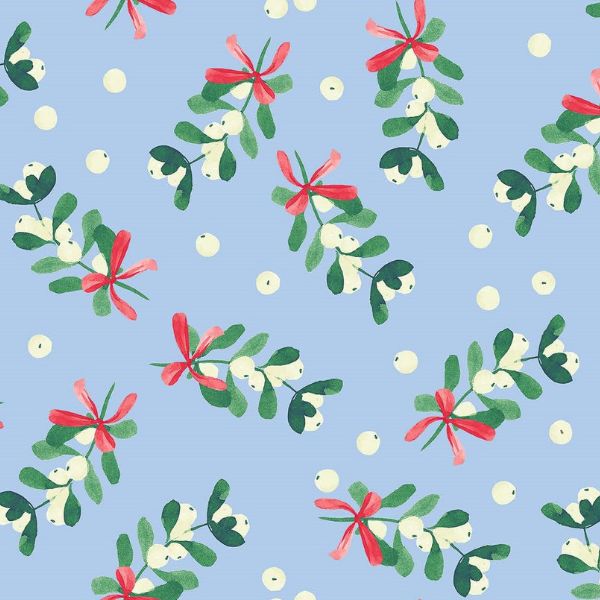 BG027 Bluebellgray FA LA LA, Mistletoe Icicle, Lewis & Irene. A pretty design with red ribbon tied mistletoe and white berries. Featured on an icicle coloured background.