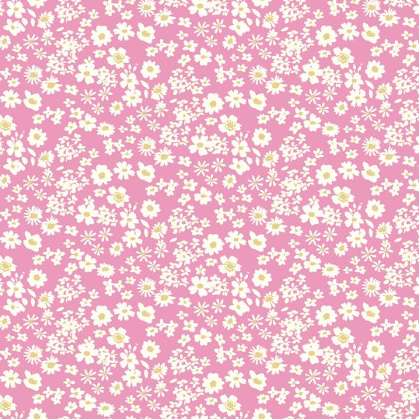 BG040 Ditsy Rose, Flowers Collection by Bluebellgray is a design of white and yellow flowers on a rose pink background.