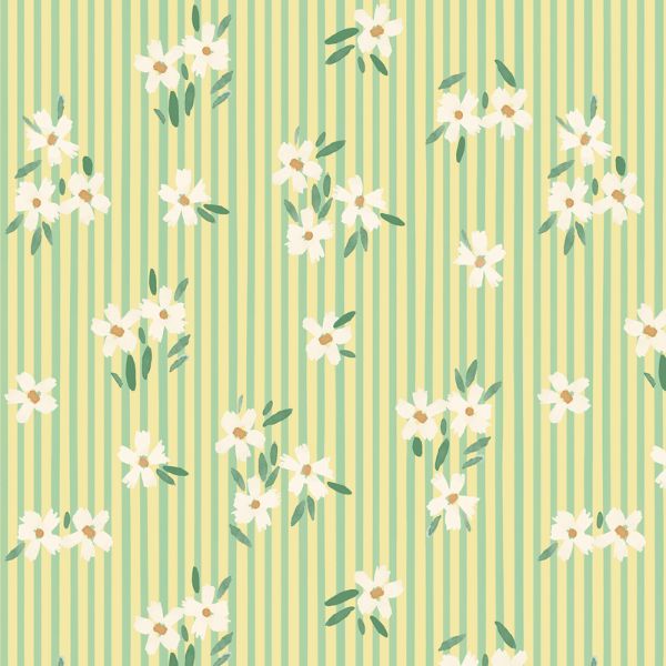 BG057 Betsy Ivy, Berneray by Bluebellgray is a design of white flowers on a striped green and yellow background.