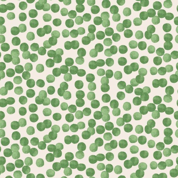 BG087 Garden Peas Green, Vegetable Patch by Bluebellgray features a charming design of green garden peas dotted on a cream background.