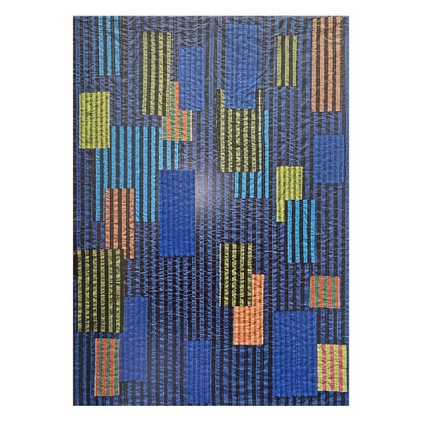 Boro Fabric Pack includes all the fabrics you need to complete this quilt top. Kaffe tried to use only his darkest woven stripes for this quilt, so that they almost become invisible. Kaffe then hand-stitched Kantha-style stitches in contrasting thread through the rectangles. He has taken his woven stripes and placed them on an inky background to pay homage to the antique cloth pieces used by Japanese farmers. This quilt would suit a nature that is moved by dark subtle structure and balance.