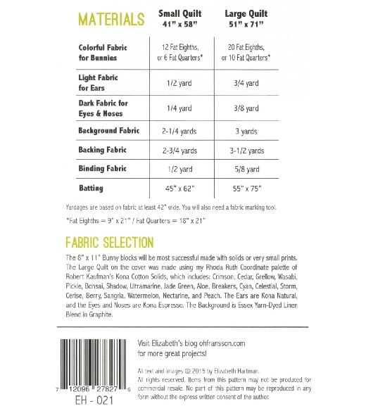 EH-021 Bunny Pattern – Elizabeth Hartman
