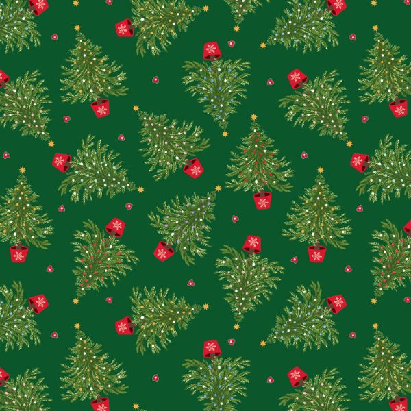 C116-3 Oh Christmas Tree! Oh Christmas Tree on Green with Gold Metallic, Lewis & Irene
