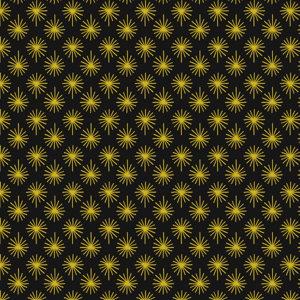 C122C Gold Star on Black, Away in a Manger by Lewis & Irene features sparkling gold stars on a black background.