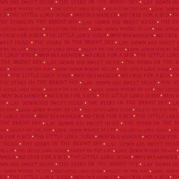 C124B Away in a Manger on Red, Away in a Manger by Lewis & Irene features lines from the carol on a red background.