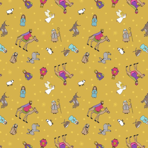 C125A Nativity Characters on Gold, Away in a Manger by Lewis & Irene features characters from the nativity scene on a gold background.