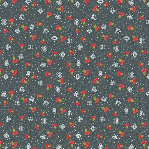C134C Thistledown on Iced Forest, Celtic Christmas by Lewis & Irene is featuring a dark background with scattered delicate thistledown motifs, giving a gentle wintery feel ideal for adding a light, elegant touch to Christmas quilts and crafts.