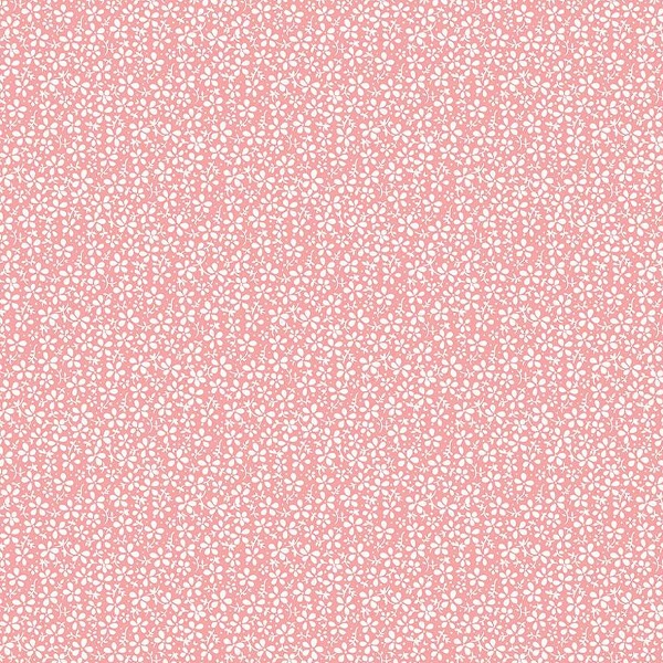 C15836 Daisies Coral Precious Petites by Gerri Robinson of Planted Seed Designs for Riley Blake Designs. This print features white flowers and leaves on a coral background.