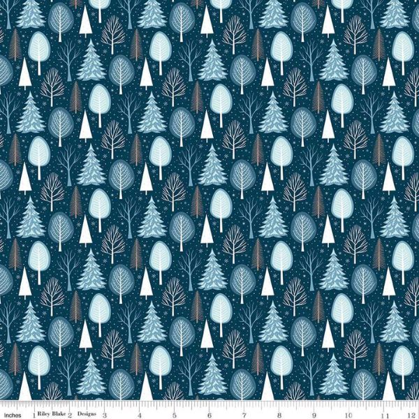 C16362-Navy Winter Magic Trees, Winter Magic by Dani Mogstad for Riley Blake features beautiful blue winter trees on a navy background. Perfect for any festive quilting project.