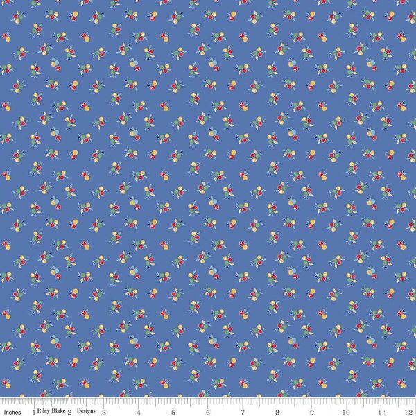 C16655 Blue Kitchen Flowers by Sandy Klop of American Jane for Riley Blake Designs. This sweet print features clusters of flowers on a blue background. Perfect for pretty quilts, bags and dress making.