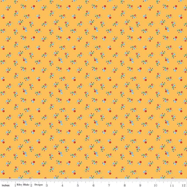 C16655 Yellow Kitchen Flowers by Sandy Klop of American Jane for Riley Blake Designs. This sweet print features clusters of flowers on a yellow background. Perfect for pretty quilts, bags and dress making.