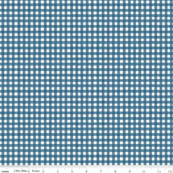 C18375-Navy Gingham, Cath Kidston Signature Collection by Riley Blake features a charming gingham print of navy stripes on a cream background.