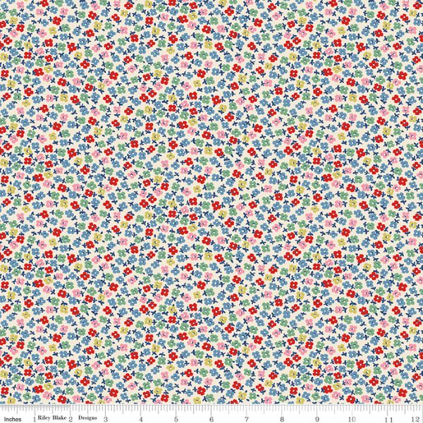 C18376-Cream Teeny One, Cath Kidston Signature Collection by Riley Blake features a charming print of tiny colourful flowers on a cream background.