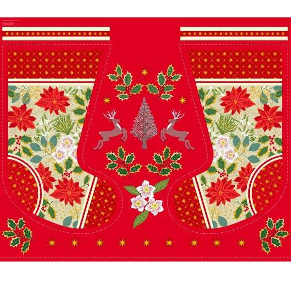 C99 Yuletide Stocking Panel by Lewis and Irene is a stunning design featuring traditional Christmas colours embellished with gold metallic.