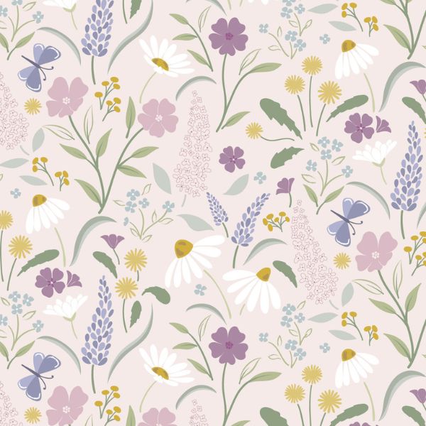 CC31.2 Floral Song, Bloom on Pink by Lewis & Irene. From the Floral Song collection by designer Cassandra Connolly for Lewis & Irene featuring pretty daisies and lupins in delicate colours.