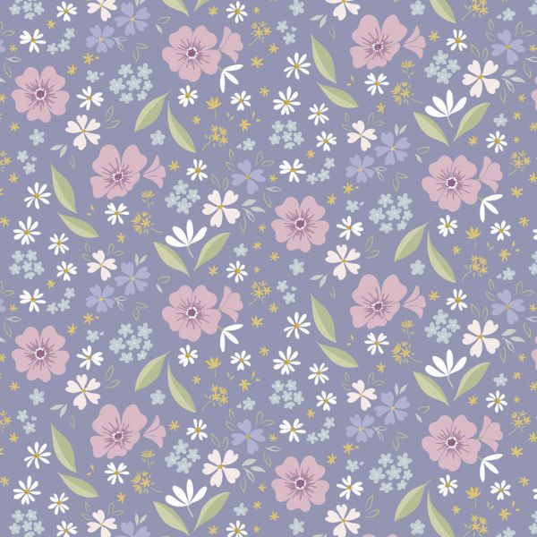 CC32.3 Floral Song, Floral Art Lavender Blue by Lewis & Irene. From the Floral Song collection by designer Cassandra Connolly for Lewis & Irene featuring pretty daisies, four leaf clovers and green leaves in delicate colours.