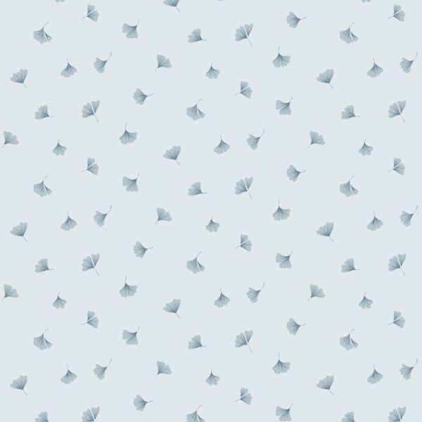 CC40.1 Ginkgo Cascade Light Blue, The Water Gardens by Cassandra Connolly is a design of falling blue ginkgo leaves on a light blue background.