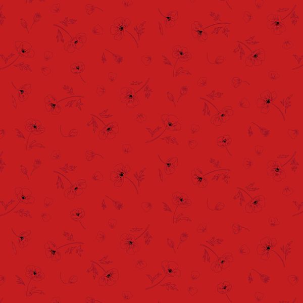 CC63.2 Ephemeral Beauty Scarlet, Forever Blooms by Cassandra Connolly features delicate clusters of black wildflowers scattered across a scarlet background. The elegant, hand-drawn blooms evoke the gentle beauty of a meadow at dawn, perfect for refining quilts, home décor pieces, or spring-inspired sewing projects.