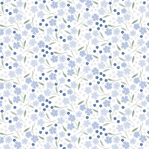 CC64.1 Forevermore White, Forever Blooms by Cassandra Connolly features fine botanical line work in soft blues arranged in a graceful, repeating floral design across a crisp white background. Light and airy, this delicate print evokes the timeless charm of pressed wildflowers and is perfect for subtle quilt backgrounds, elegant piecing, and romantic springtime makes.
