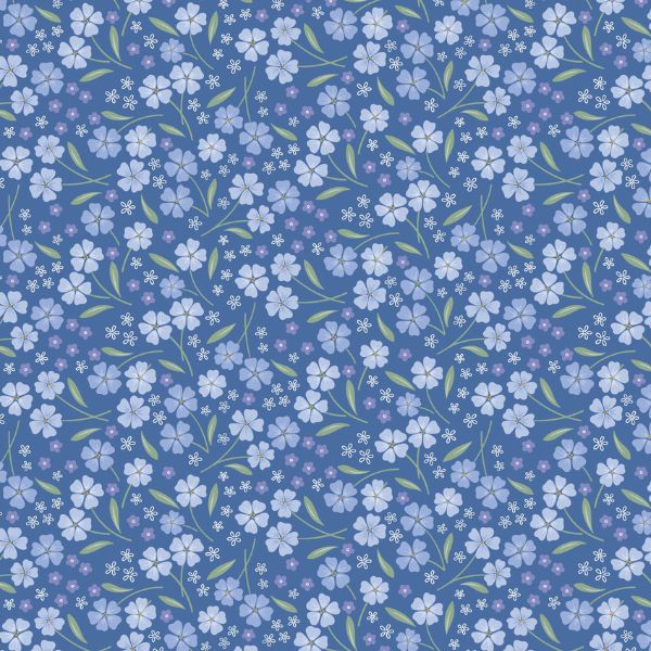CC64.2 Forevermore Mid Blue, Forever Blooms by Cassandra Connolly features fine botanical line work in soft blues arranged in a graceful, repeating floral design across a blue background. Light and airy, this delicate print evokes the timeless charm of pressed wildflowers and is perfect for subtle quilt backgrounds, elegant piecing, and romantic springtime makes.