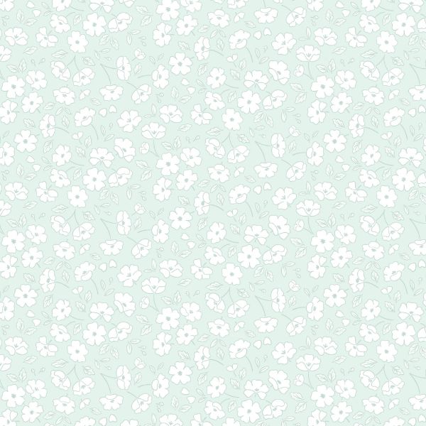 CC69.1 Blossom by Blossom Pale Turquoise, Dear Spring by Cassandra Connolly features delicate little blossom flowers on a pale turquoise background.