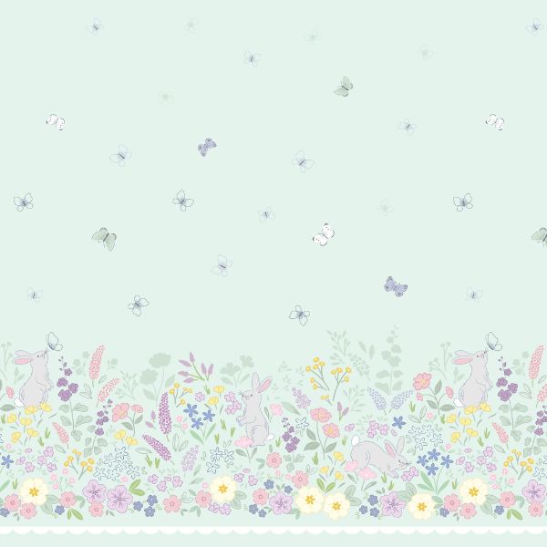 CC71 Spring Symphony Double Edge Border Panel, Dear Spring by Cassandra Connolly features a double border of beautiful pastel flowers decorated with butterflies on a pastel blue background.
