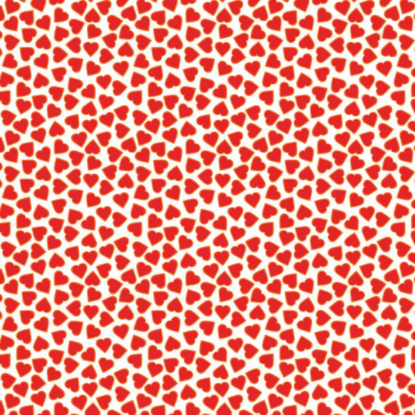 This print features small red hearts on a white background.