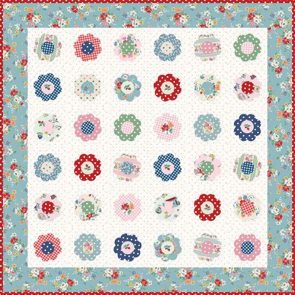 Charm Posies Quilt Kit, Cath Kidston Signature Collection includes all the fabrics for the quilt top, binding, and the pattern.
