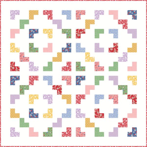 Composition Quilt Kit, 30’s Playtime by Linzee Kull McCray includes all fabrics for the quilt top and binding, plus the pattern.