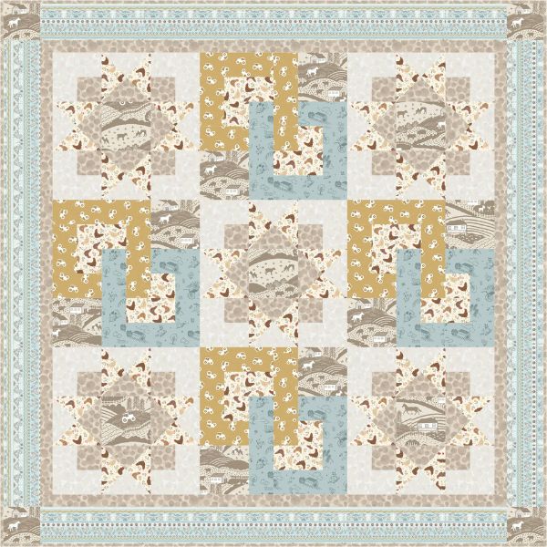 Country Croft Quilt Kit 2, by Lewis & Irene features fabrics from the Country Croft collection by Lewis & Irene. The colours reflect the gentle tones of farmland and countryside living soft earths, creams, duck egg blues, and warm greys—evoking the peaceful rhythm and nostalgic beauty of rural life.