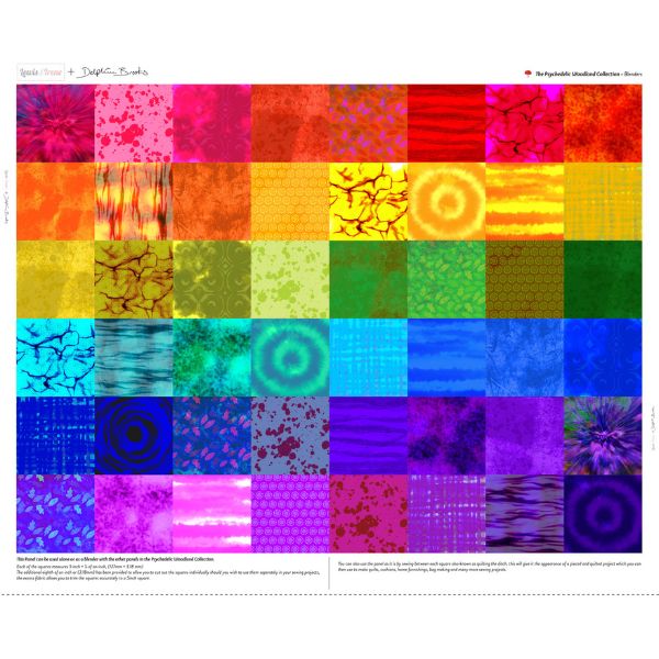 DB23 Blenders 5″ Squares Panel 36″: The Psychedelic Woodland Collection, Lewis & Irene + Delphine Brooks