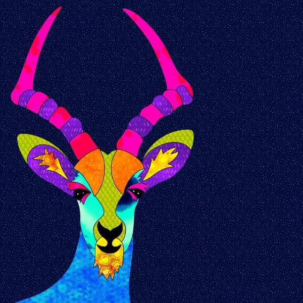 DB27 Impala Panel by Delphine Brooks for Lewis and Irene is a 36″ panel to create a colourful impala.