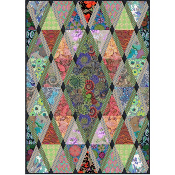 Diamonds in the Rough Quilt – Elegant Quilt Kit: Kaffe Fassett Collective Autumn 2024 is an elegant geometric quilt featuring fabrics from the Autumn 2024 collection by the Kaffe Fassett Collective.