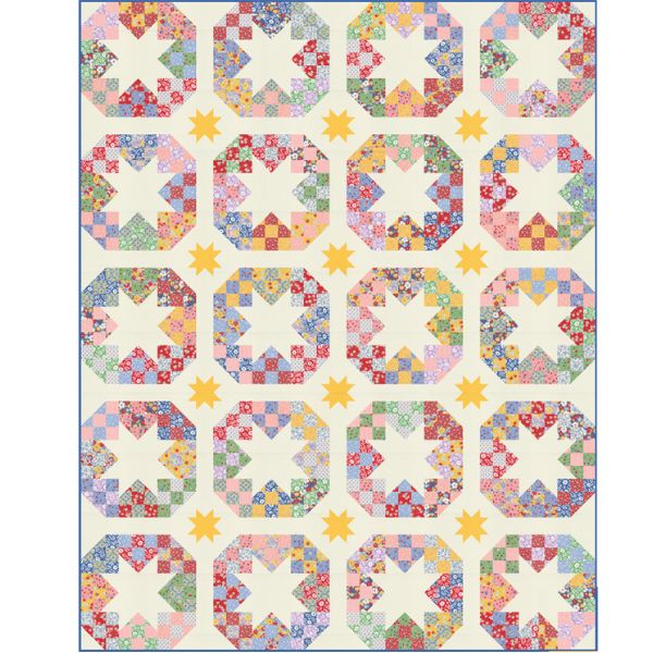 Disco Stars Quilt Kit, 30’s Playtime by Linzee Kull McCray includes all fabrics for the quilt top and binding, plus the pattern.