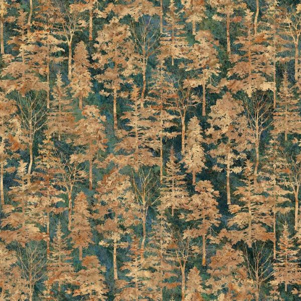 DP28767-69 Stonehenge Rooted by Linda Ludovico features autumnal trees on a dark green background.