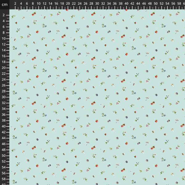 DP29011-42 Country Mouse by Deborah Edwards features little berries and mushrooms on a pale blue background.