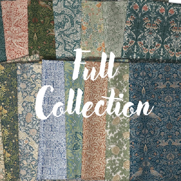 Emery Walker’s House Full Collection Fat Quarter Pack (15pcs) by Morris & Co. features a wonderful array of birds, florals, and foliage designs inspired by the love between friends and the legacy of a truly historic home.