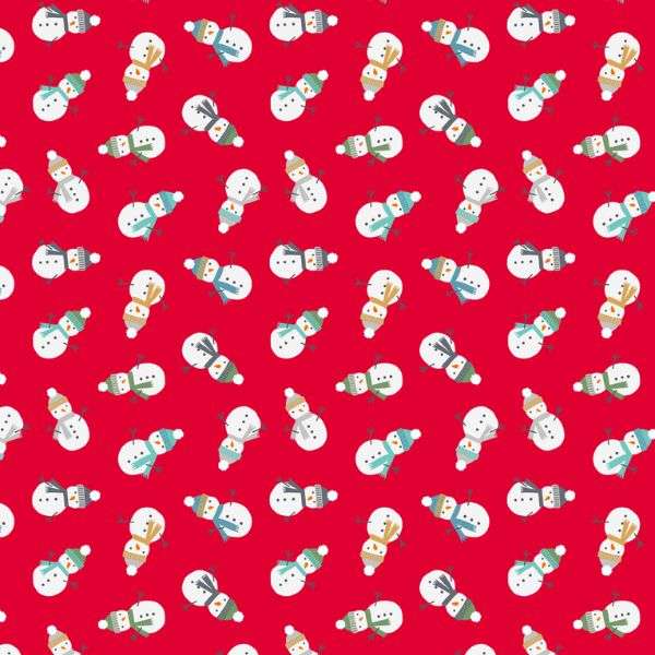 F35.3 Scattered Snowmen on Red (Flannel) by Lewis & Irene features a fun snowmen all over