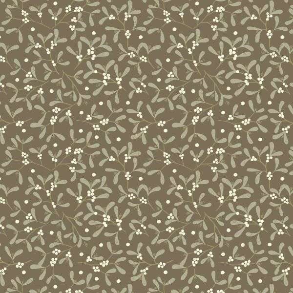 F43.2 Mistletoe on Dark Taupe Flannel by Lewis & Irene is a soft and cosy festive print featuring mistletoe in light taupe all over.