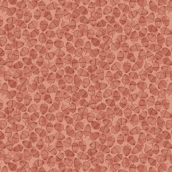 F681.1 Acorns on Blush, Snuggle up Season Flannel by Lewis & Irene features a charming scatter of hand drawn acorns in rich autumn tones on a warm blush pink background, capturing the cosy essence of autumn.