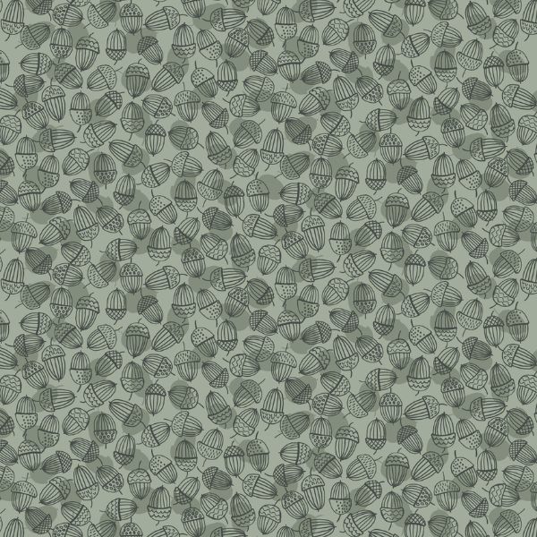 F681.3 Acorns on Sage, Snuggle up Season Flannel by Lewis & Irene features a charming scatter of hand drawn acorns in rich autumn tones on a sage background, capturing the cosy essence of autumn.