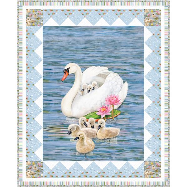 Family Outing Quilt Kit, Swan Sanctuary by Rosiland Soloman includes all fabrics for the quilt top, binding, and the pattern.